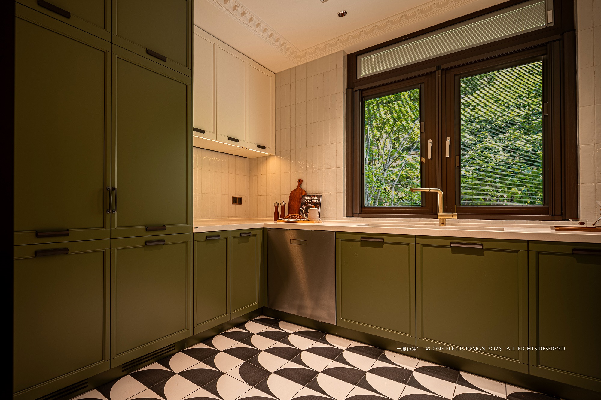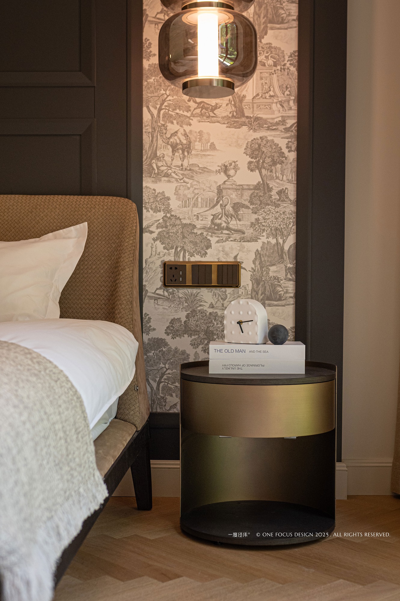 橄榄棕晕染墙面,仿佛将自然的花鸟气息引入室内,奠定清新自然的基调。 以其独特的梯形轮廓与现代流动曲面,散发出慵懒柔软的迷人气质,成为空间中兼具新颖魅力与精工细节的艺术品。