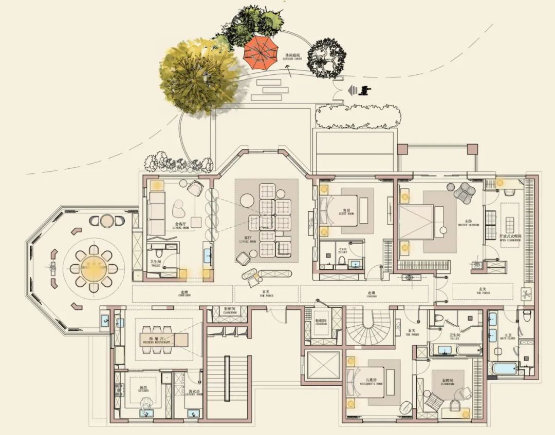 不同风格沙发的巧妙搭配,不仅彰显奢华的品味,更编织出层次丰富、氛围多元的休闲与会客场域, 尽显新贵气质。