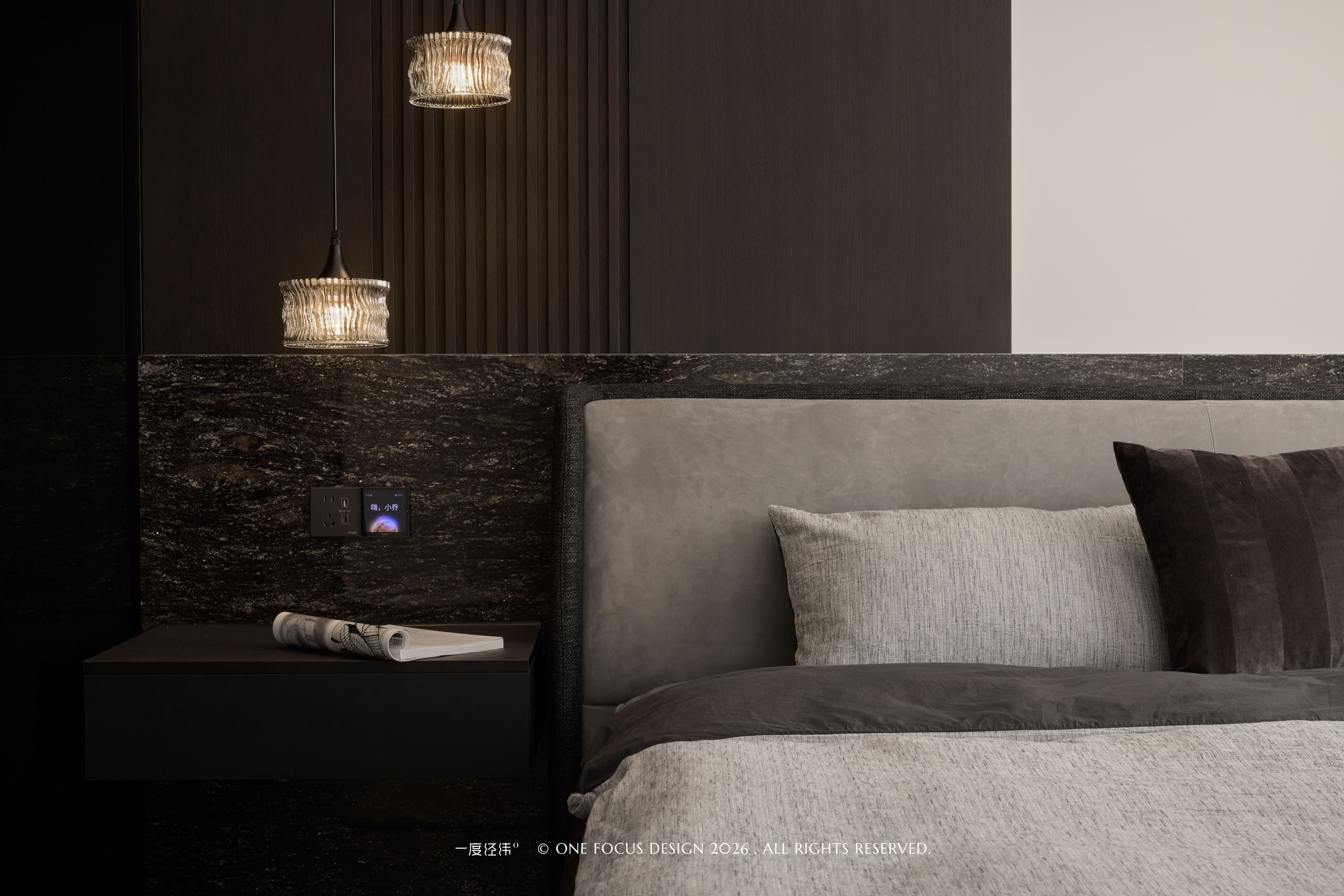 以现代意式简约为核心,将“静谧私域”与“意式奢享”深度融合。通过克制的色彩、高级的材质与流畅的线条,摒弃多余装饰。无论是主卧的沉稳深邃,还是次卧的简净留白,都以光影为笔、石木为墨,在私密场域中平衡了功能与美学,让每一处细节都成为意式生活哲学的注脚,让休憩成为一场兼具质感与温度的奢享。